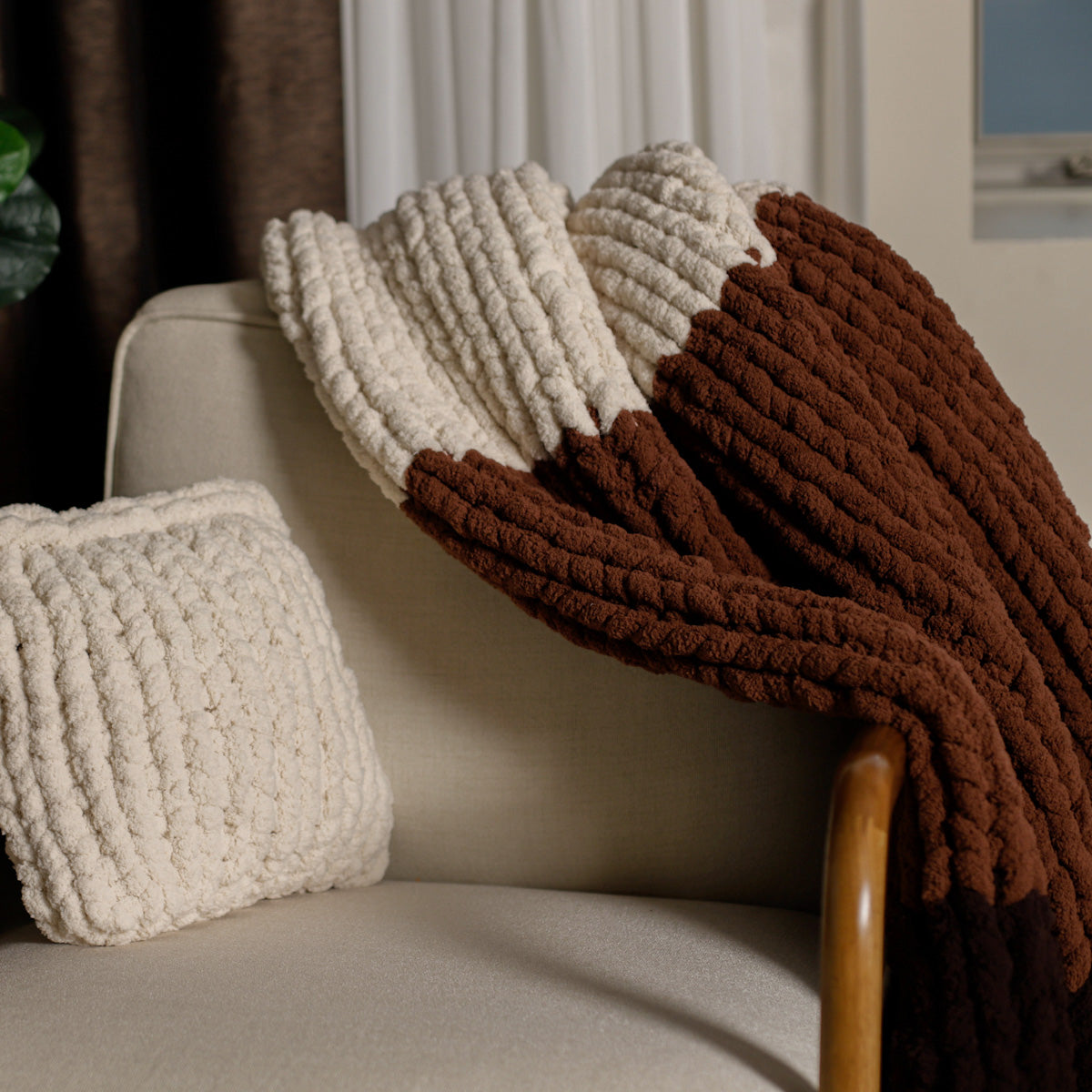 • Laine chenille jumbo ultra douce, durable et sécuritaire pour les enfants et les animaux. Facile d’entretien et parfaite pour un usage quotidien.